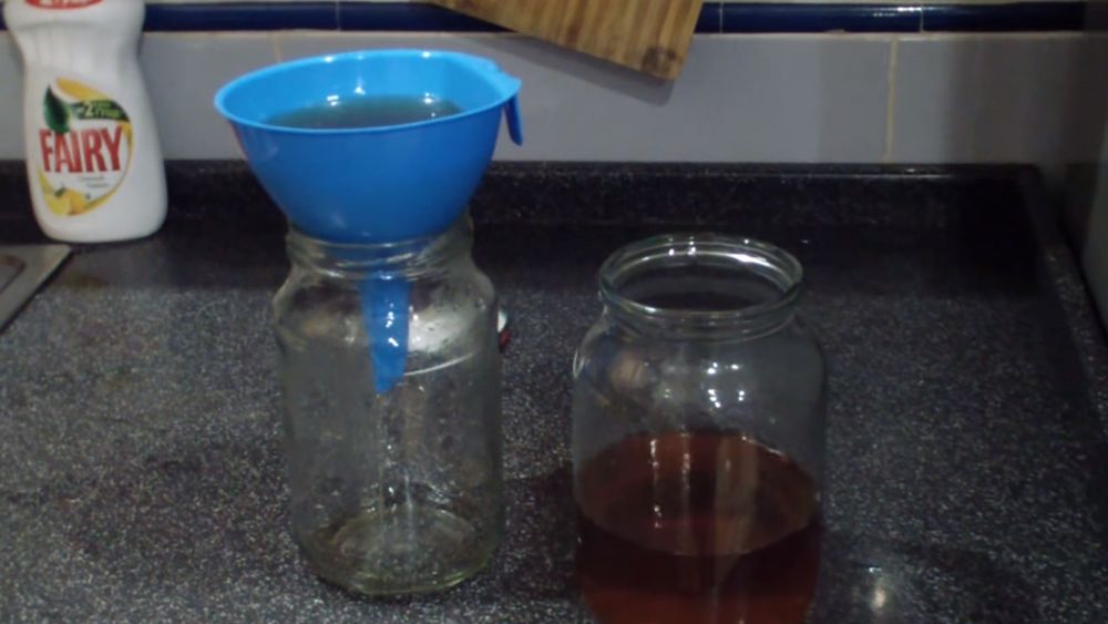 - Фильтруем получившийся раствор через фильтр из ваты.