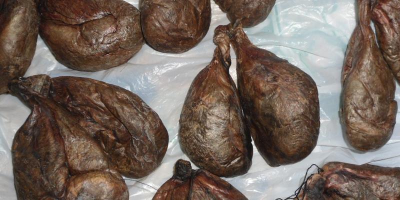 очень важно, чтобы пакеты разделялись без повреждений. Затем их вывешивают в темном проветриваемом помещении от 1 месяца до 3 месяцев. Сырье не должно быть слишком сухим или недосушенным. После того, как продукт будет полностью готов к употреблению, можно приступать к приготовлению.