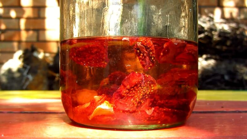 Большим плюсов является то, что из клубничных чипсов можно вот так быстро приготовить наливку у себя дома в любое время года.