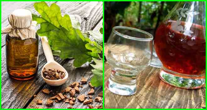 - Настойка из коры дуба. Готовится на водке или разведенном спирте – 1 чайная ложка измельченного растительного компонента на 400 мл спирта/водки. Настаивается средство не менее недели.