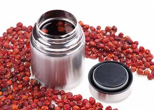 - Три столовые ложки ягод шиповника заливают горячей водой и ждут два часа, пока она настаивается.