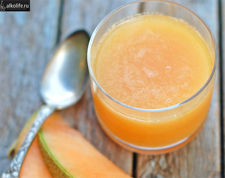 - Взбить мякоть дыни, смешать с сиропом или медом и вылить в шейкер.