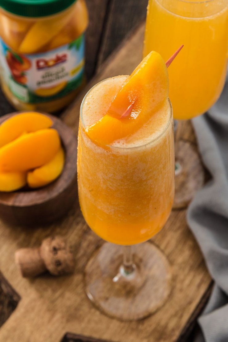 Персиковый коктейль Беллини можно приготовить практически с любым шампанским. Хотя в оригинальном рецепте предполагается использовать игристое вино, с шампанским оно получается довольно вкусно.