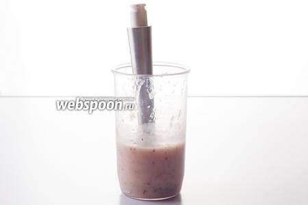 - Ягоды переложить в блендер, добавить сахарный сироп и лимонный сок. Тщательно измельчите, пока не получите однородную пасту (жидкий вариант).