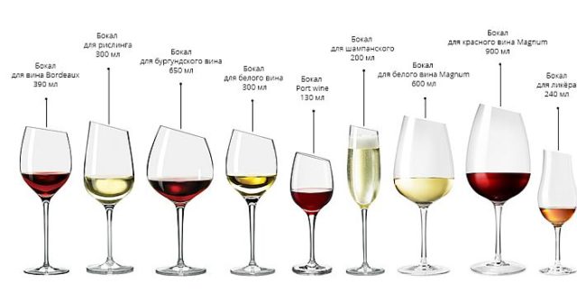 Из таких бокалов пьют портвейн и мадерское вино, средний объем которых составляет 150-250 мл.