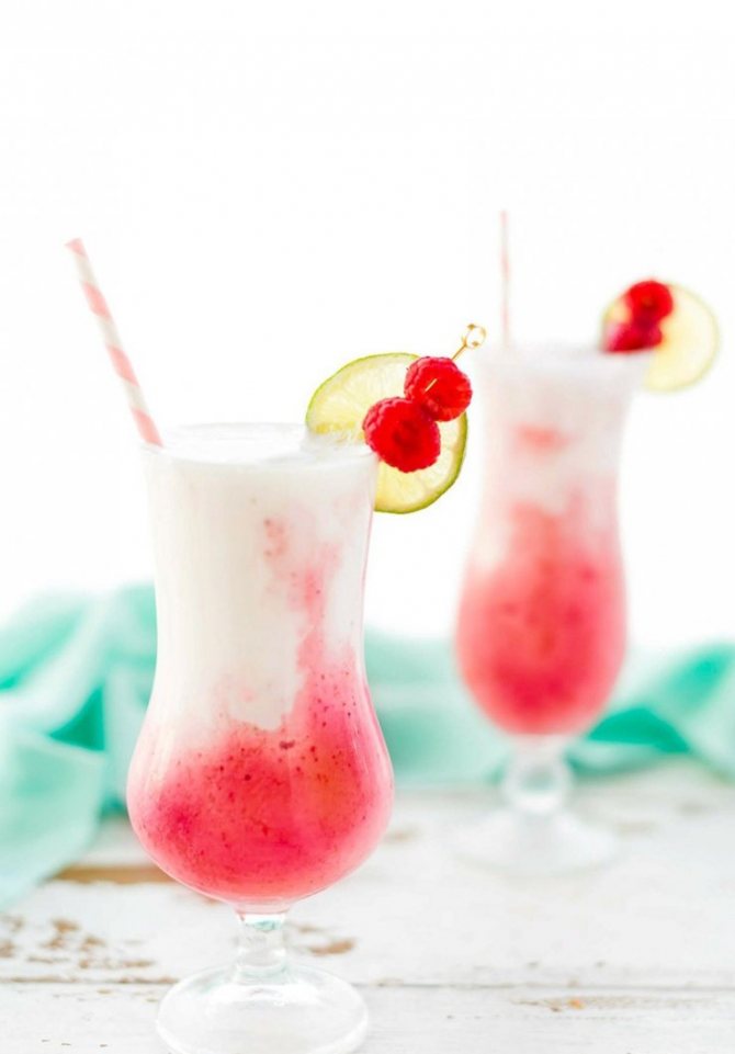 Малиновый дайкири – изысканный коктейль, который подают в бокалах Rox или в чаше Storhet. Напиток украшают свежей малиной и соломкой, иногда – долькой лимона или лайма.