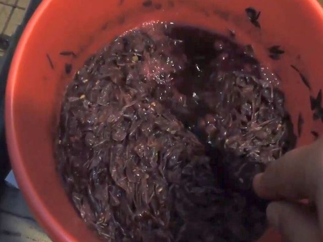 Виноград остается в емкости пять дней, в течение которых его необходимо периодически перемешивать.