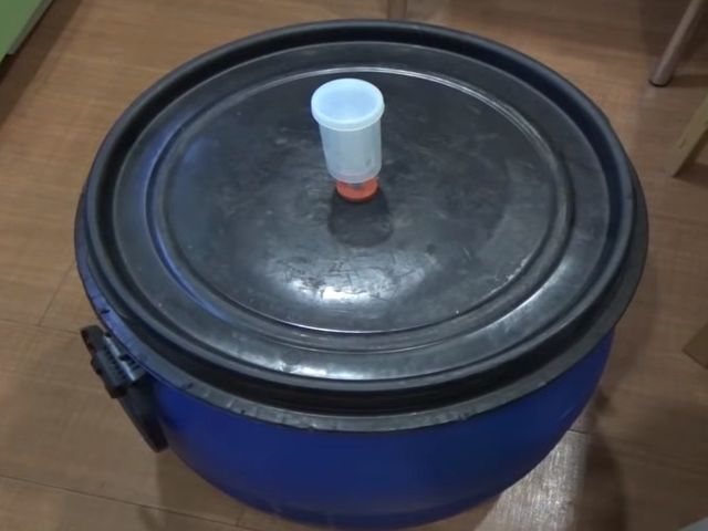 Слитое вино после первого брожения в чистую емкость закрыть гидрозатвором.