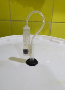 – с включением медицинского шприца и капельницы в гидрозатвор для вина;