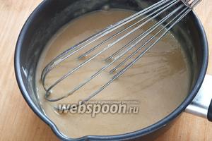 Как только масло растает, взбивайте венчиком смесь, пока она не превратится в пенистый сливочный напиток. Во время этого процесса смесь следует прокипятить.