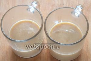 - Снимите кастрюлю с огня, добавьте масло. Однако не прерывайте процесс перемешивания. Когда масло сольется с общей массой, напиток необходимо взбить миксером или блендером до появления пены.