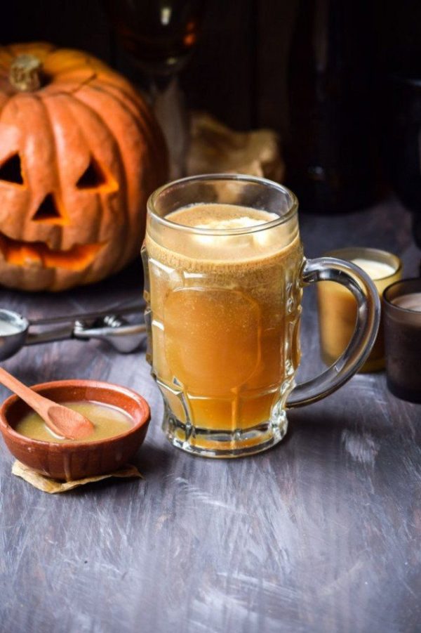 Выбрала для себя приятный слабоалкогольный рецепт на основе яблочного сидра. Чтобы не перегружать рецепт приготовлением карамельного сиропа, рекомендую приготовить экспресс-вариант десерта «Корова». Сливочное пиво, надо сказать, довольно вкусное и очень горячее!