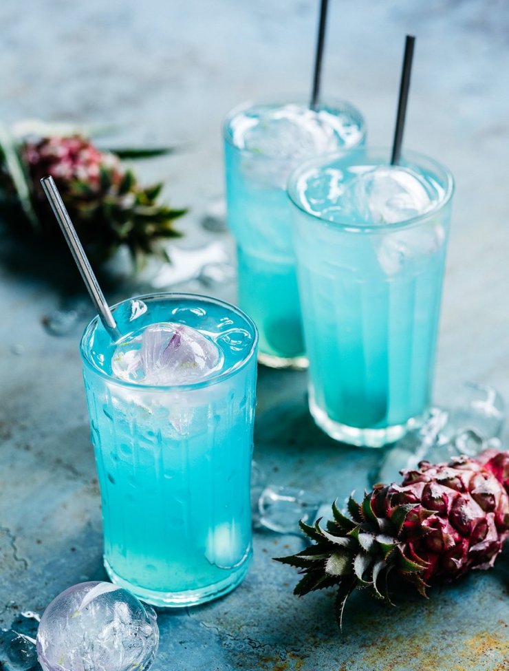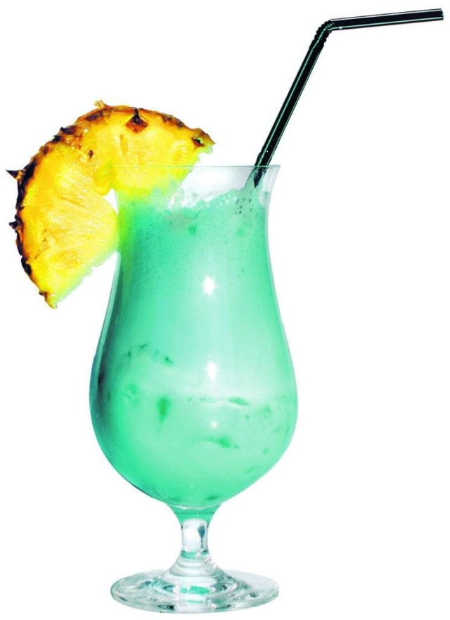 Состав: ананасовый сок, карибский ром Малибу, Блю Кюрасао, лед, долька ананаса и сахар для украшения.