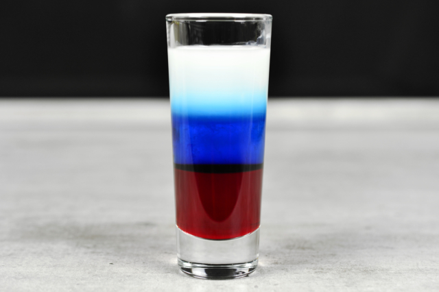 «Флаг России» – оригинальный слоистый коктейль небольшого объема.