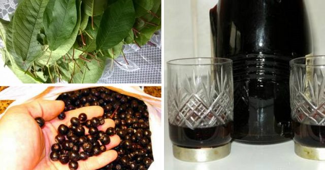 Рецепт крепкого ликёра из черноплодной рябины с вишнёвыми листьями на спирту
