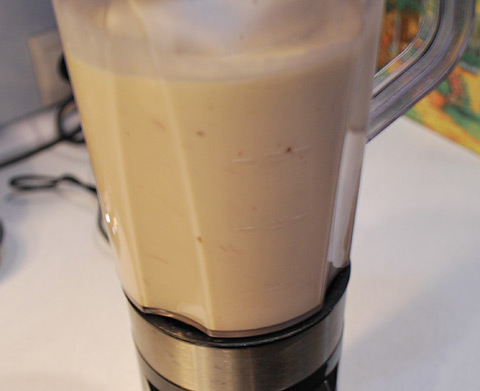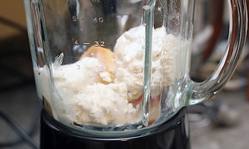 - Залейте молоком и снова включите блендер. Отключайте только тогда, когда вся масса хорошо перемешается и станет однородной.