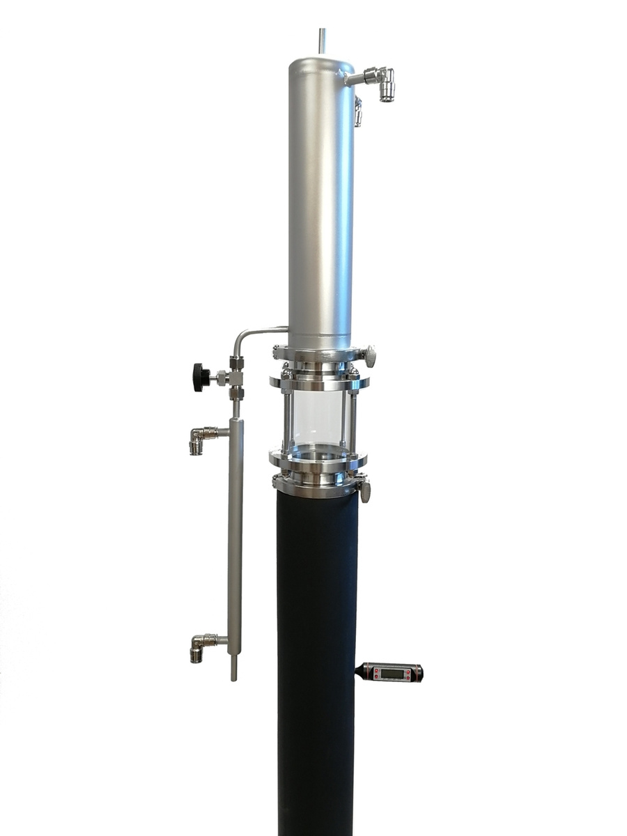 Во избежание перепадов давления и относительной опасности (взрыва), а также для получения чистого спирта-ректификата без примесей, колонна оснащена специальной трубкой в верхней части.