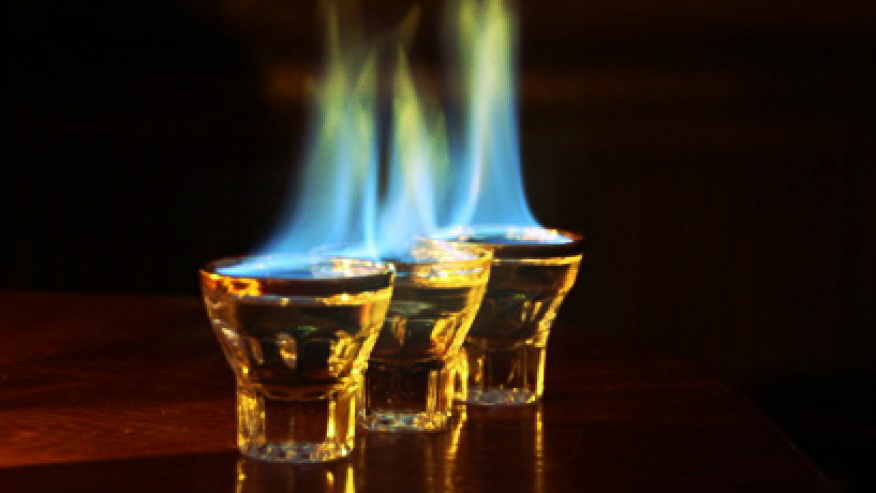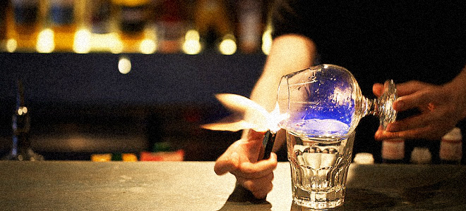 необходимо учитывать, что газированные коктейли быстрее опьяняются, поэтому в различные смеси добавляют шампанское, тоник или лимонад. Еще один секрет в том, что напитки крепче 60% об. Способны гореть синим пламенем. Посетители любят это шоу, поэтому часто заказывают эти коктейли.