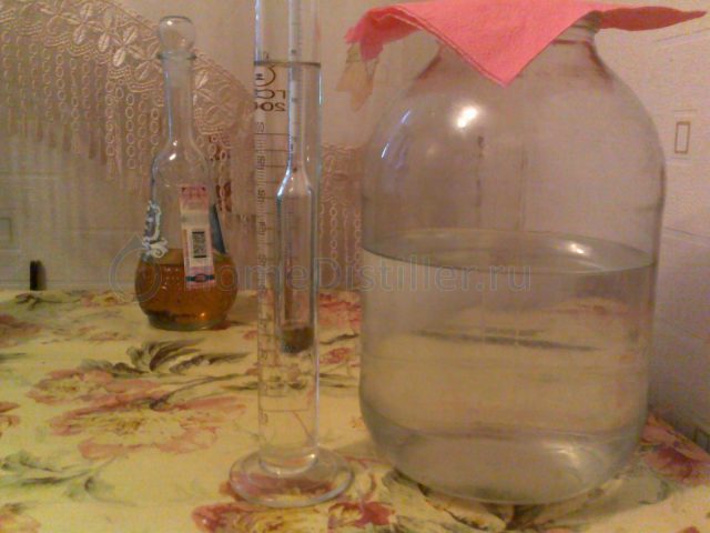 Готовность напитка можно определить по вкусу и цвету. По окончании процесса брожения, который может длиться до 2 недель, необходимо отогнать жидкость. Для получения качественного алкогольного напитка без постороннего запаха необходимо дважды дистиллировать самогон.