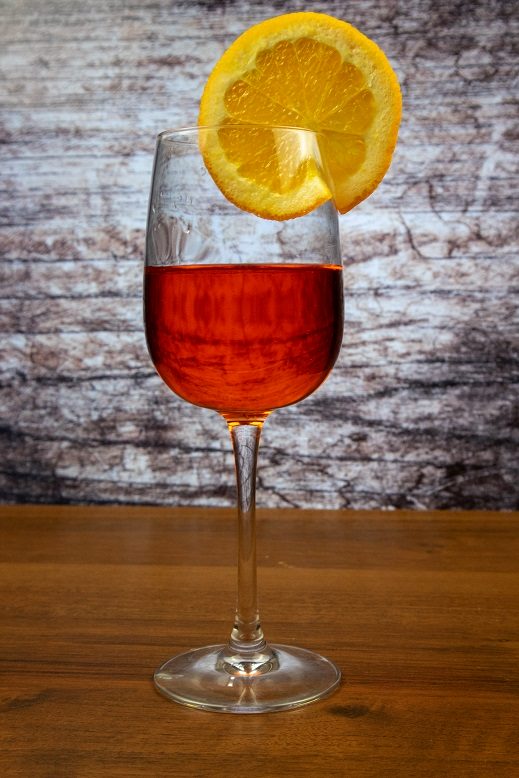 - Долька свежего апельсина — классическое украшение шприца Aperol.