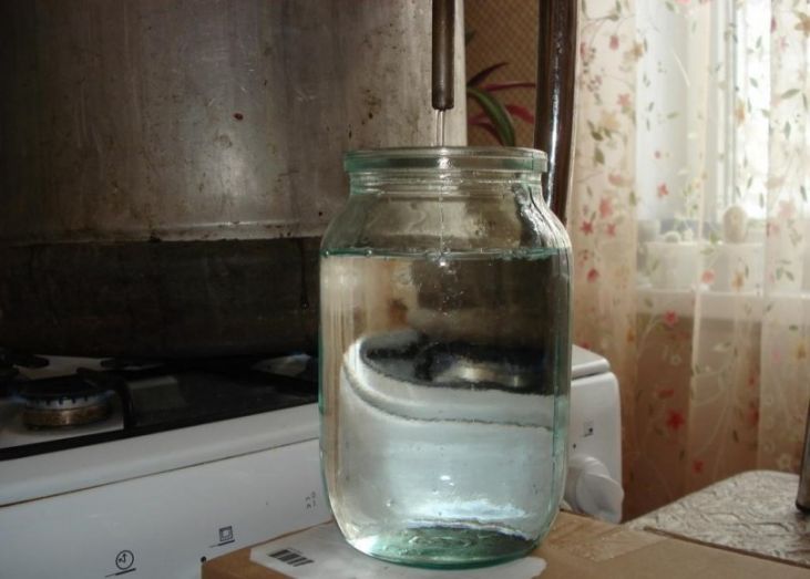 Прежде чем сделать самогон из варенья и приступить к перегонке сусла, нужно убедиться, что брожение закончилось. Основные признаки прекращения брожения: бульканья нет (перчатка спущена), пены нет, от варенья образовался осадок, жидкость стала прозрачной, светлой.