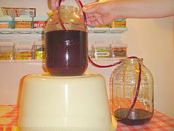 Если по прошествии полутора месяцев вино продолжает бродить, необходимо аккуратно слить его с осадка через трубку, перелить в другую емкость (или в такую же, но промытую) и дать бродить.