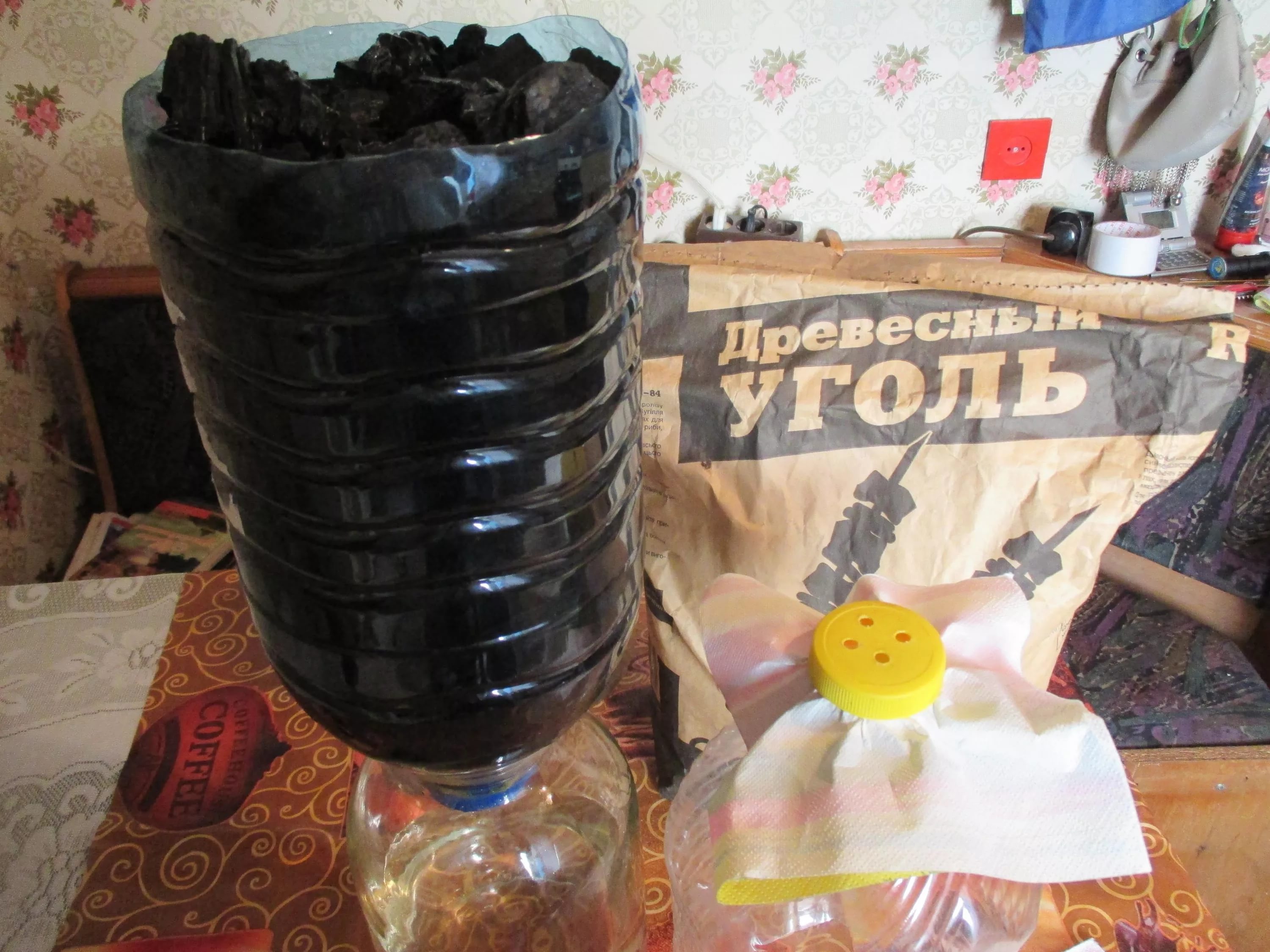- Поместите в лейку хлопковый фильтр и засыпьте его активированным углем из березы, косточковых фруктов или кокосового ореха. При отсутствии адекватного сырья смело используйте обычный аптечный активированный уголь. Процедите спирт через лейку.