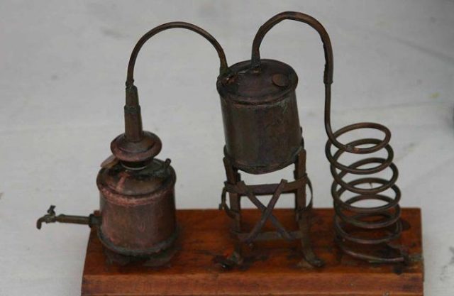 - Когда вы увидите первый «туман» в трубке, убавьте огонь и возьмите по каплям первые 10% дистиллята из чистого спирта.