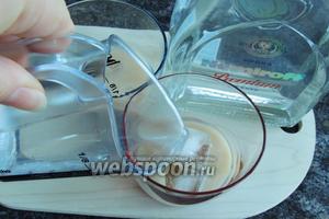 Затем медленно полейте его водкой, стараясь как можно меньше перемешивать жидкости встряхиванием.