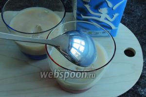 Только после этого залить молоком или сливками. Со сливками это легко, они всегда остаются на поверхности, но молоко хорошо перемешивается. Я рекомендую вливать молоко ложкой, чтобы оно меньше перемешивалось.