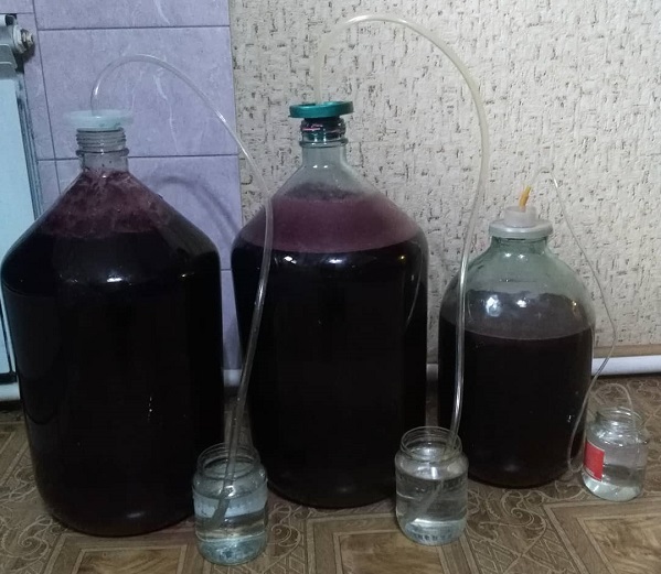 - Жидкость наливается в бутыль, на которой установлен гидрозатвор. Емкость переносят в прохладное помещение на 3 месяца.